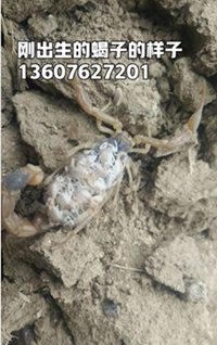 (2)成蝎的管护 在生长的产仔的过程中,成蝎对饲料的质量和量要求比较高,这时一般以昆虫,肉食为主,增加供料的次数,野生蝎子7-8月母蝎陆续产仔,产后成蝎要雌雄混养便于交配。产仔时温度一般在35-38度,在这样的温度范围内,不但产仔快,产后幼蝎成活率也高,母蝎产仔前不要受到惊挠以便顺产。